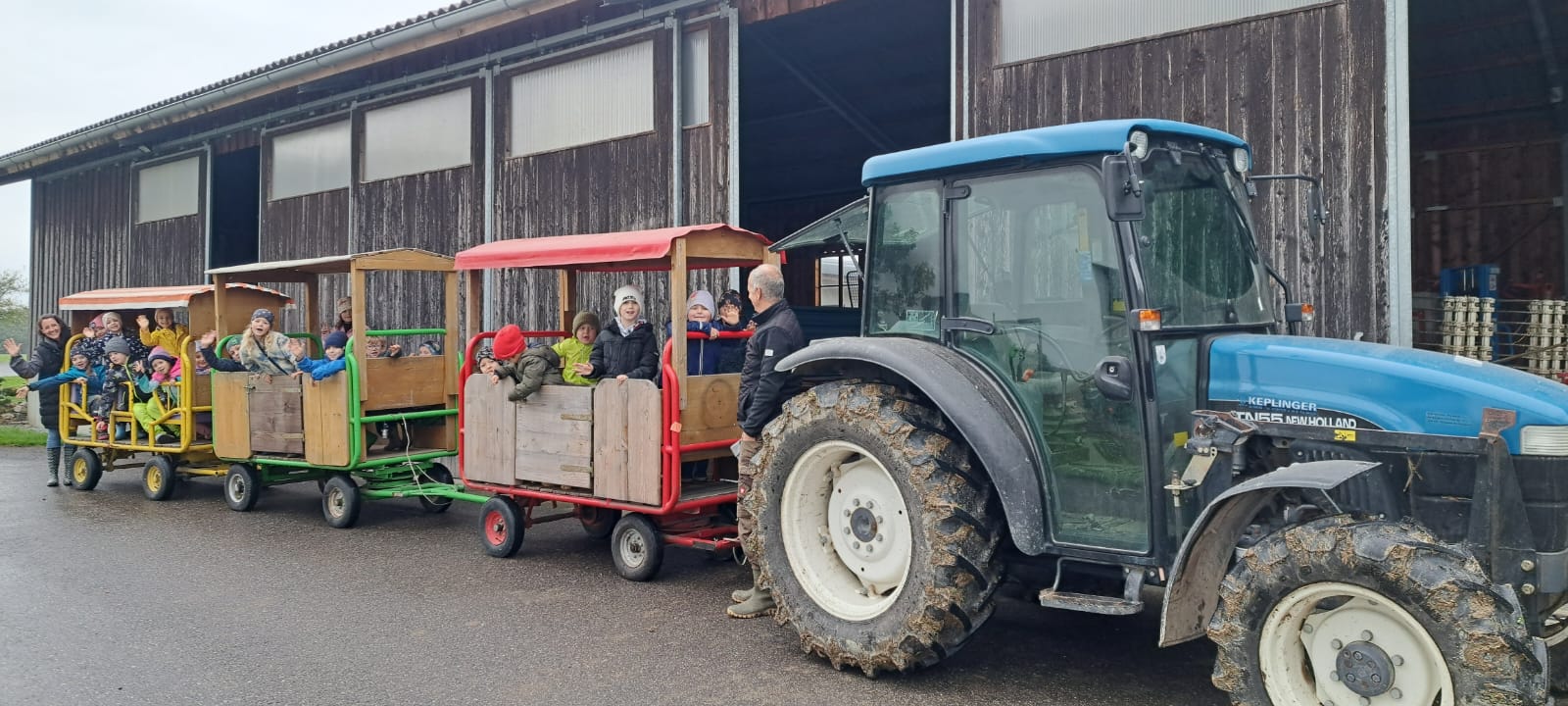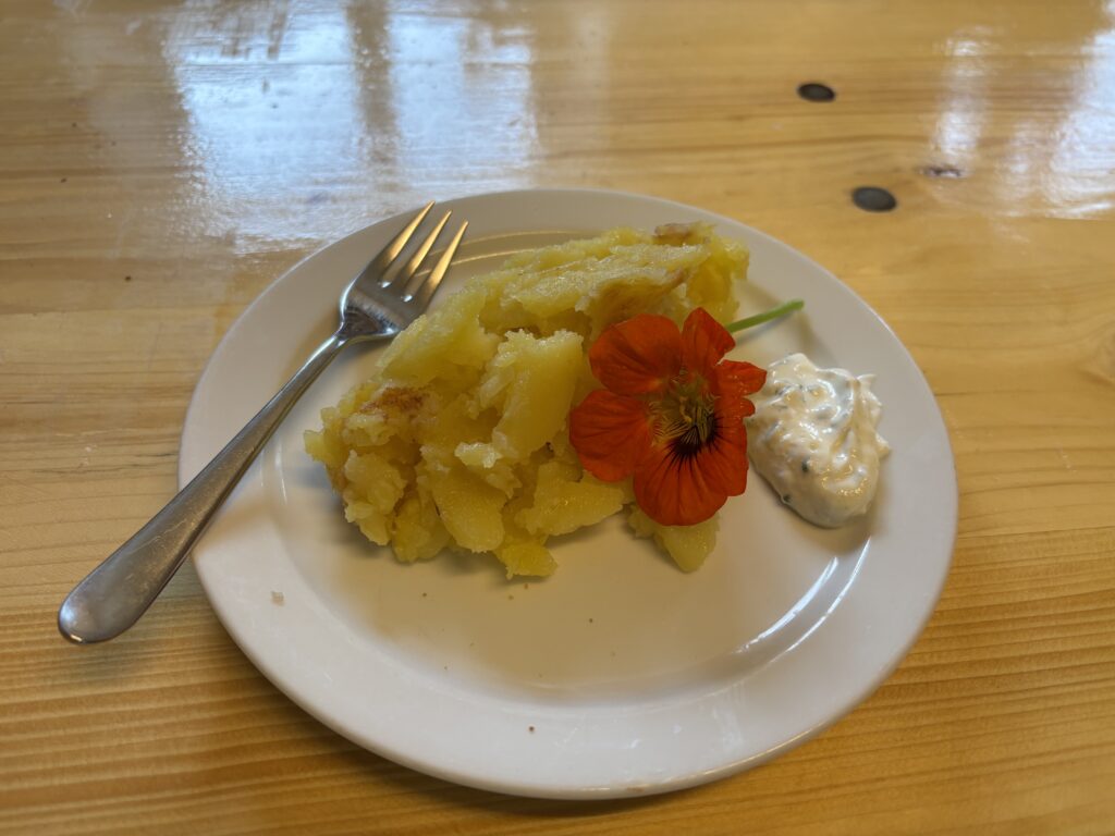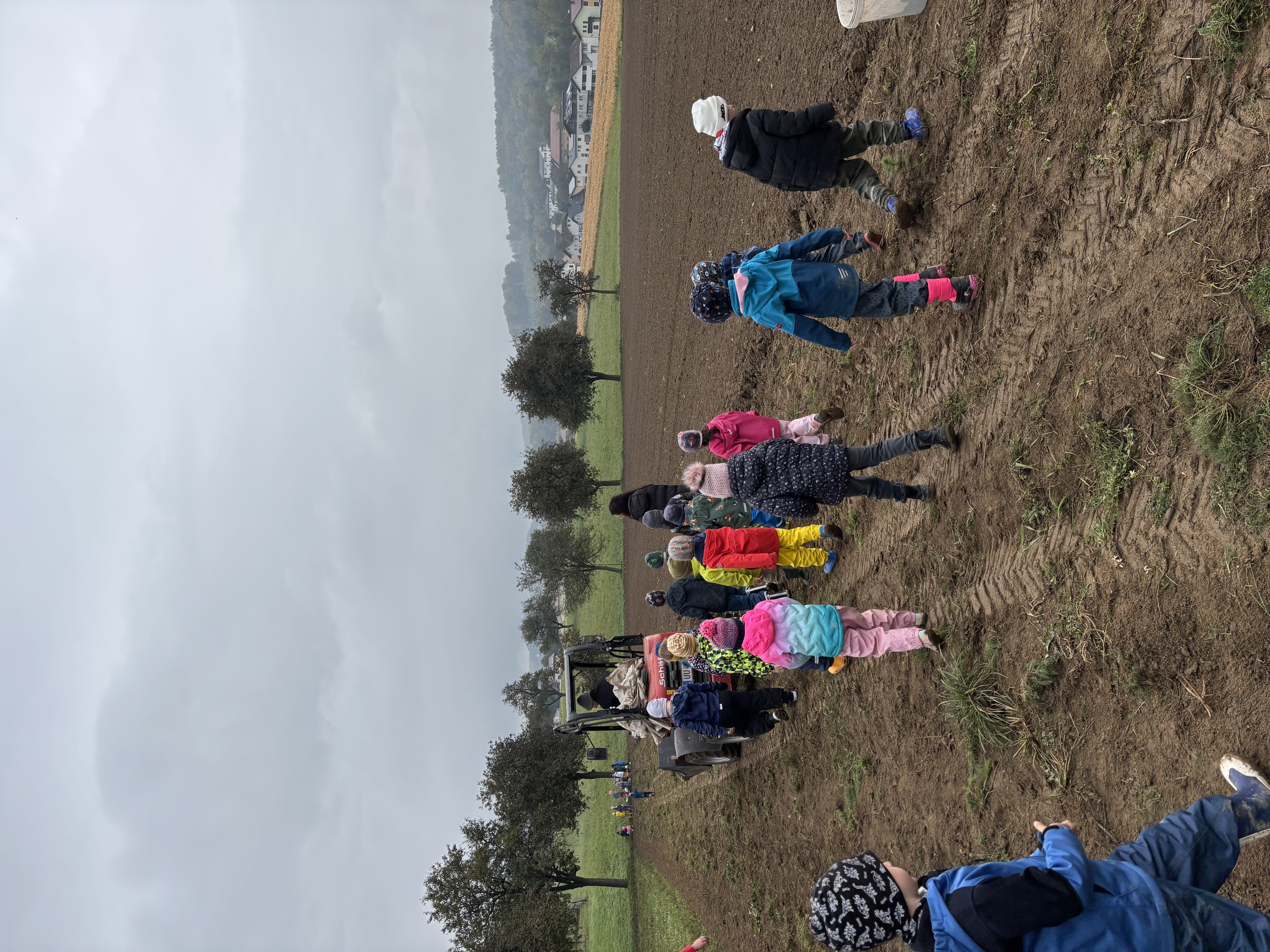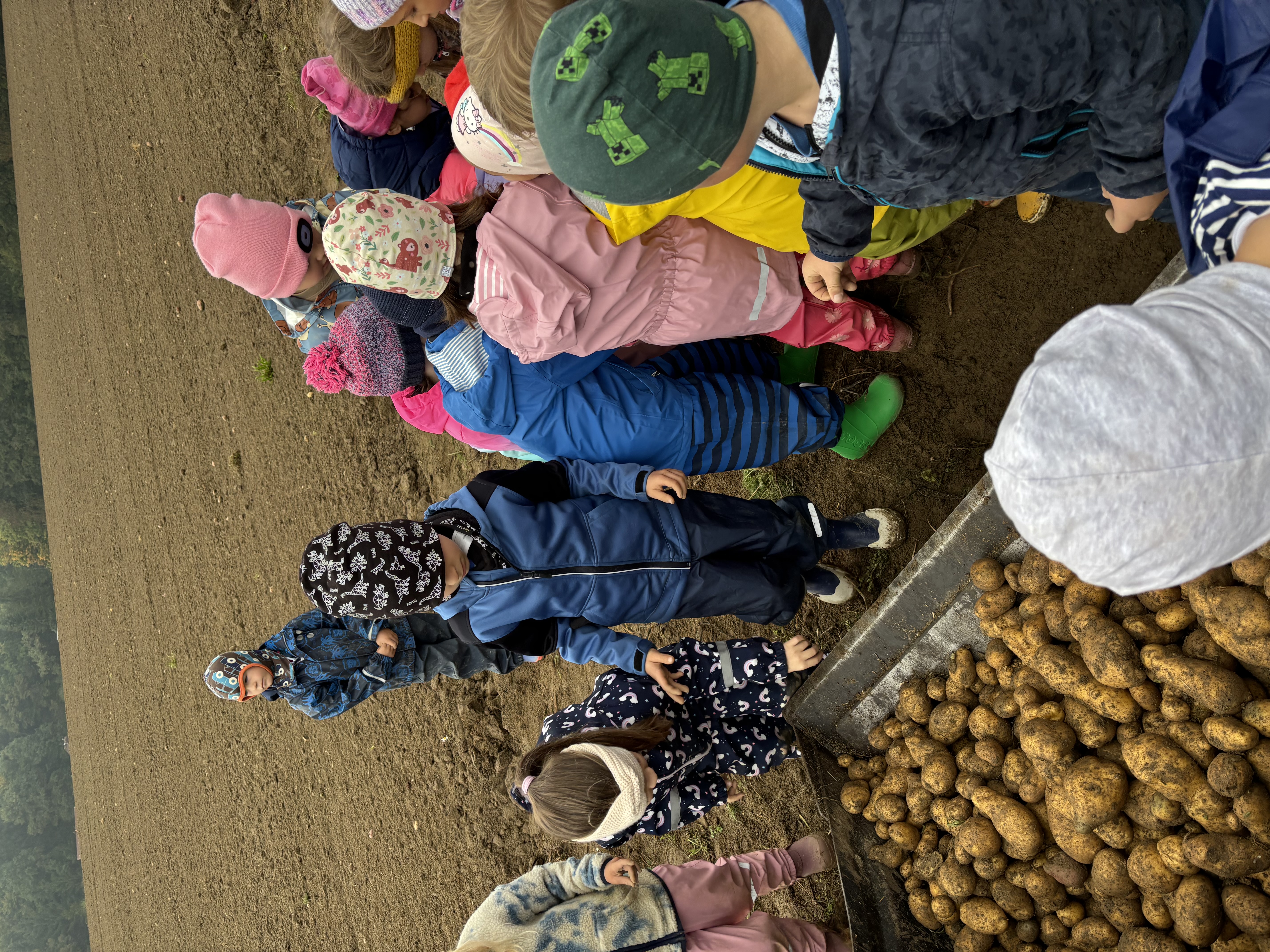 Anfang Oktober besuchten alle ersten Klassen und die Vorschulgruppe Bauer Fritz in Mittertreffling. Unter seiner Anleitung durften die Kinder die Erdäpfel ausgraben. Alle halfen begeistert mit. Zur Stärkung gab es einen Erdäpfelschmarren von Bäuerin Maria.
